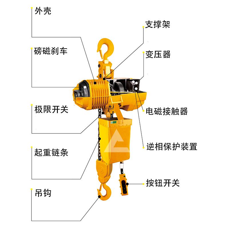 電動葫蘆是工業、建筑、物流等多個行業中都會用到的一種起重葫蘆設備,其中環鏈電動葫蘆是一種使用方便的電動葫蘆,接下來,我們就來詳細解析一下環鏈電動葫蘆的結構。