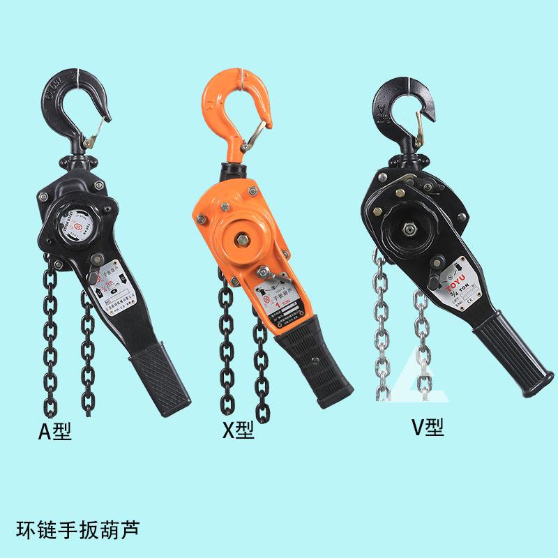 就拿撼馬公司生產(chǎn)的環(huán)鏈手扳葫蘆來說,主要是HSH手扳葫蘆系列,有A型、V型和X型三大類,這三類鏈條手扳葫蘆通過外殼可以進行區(qū)分,其中A型手扳葫蘆額定載重是0.25噸-9噸,V型手扳葫蘆的額定載重是0.75噸-9噸,X型倒鏈手扳葫蘆是0.25噸-50噸,HSH-V型手扳葫蘆外墻板上有個單獨的開關(guān),可以打開,起到快速調(diào)整鏈條的作用,不用了之后再推回去即可。A型手扳葫蘆齒輪不能脫開,需要靠離合彈簧把剎車彈起來進行拉動。鏈條手扳葫蘆可以進行貨物的升降、牽引、捆綁等,廣泛應用在多個行業(yè)中,在空間狹窄的地方,更能顯示它的特性。大家在選擇鏈式手扳葫蘆的時候,可以根據(jù)自己的貨物重量和場景進行合適產(chǎn)品的選擇。
